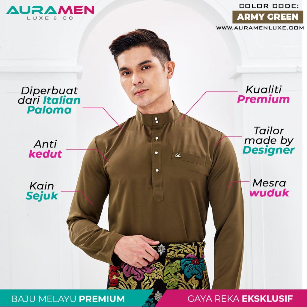 Baju Melayu X AuraMen Luxe – Army Green